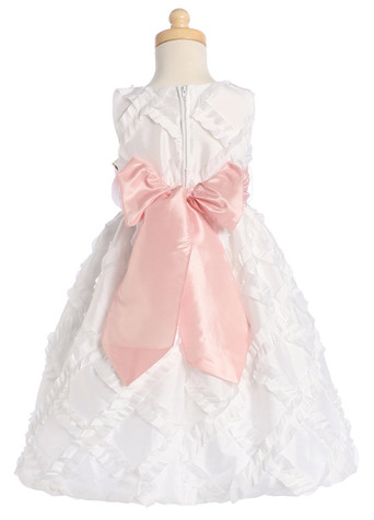 - Removable ribbon sash w/ removable matching flower (color shade, style & size of flower may vary from time to time)