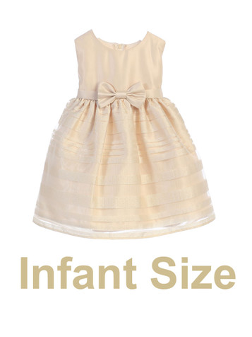 Champagne Striped Metallic Organza Dress