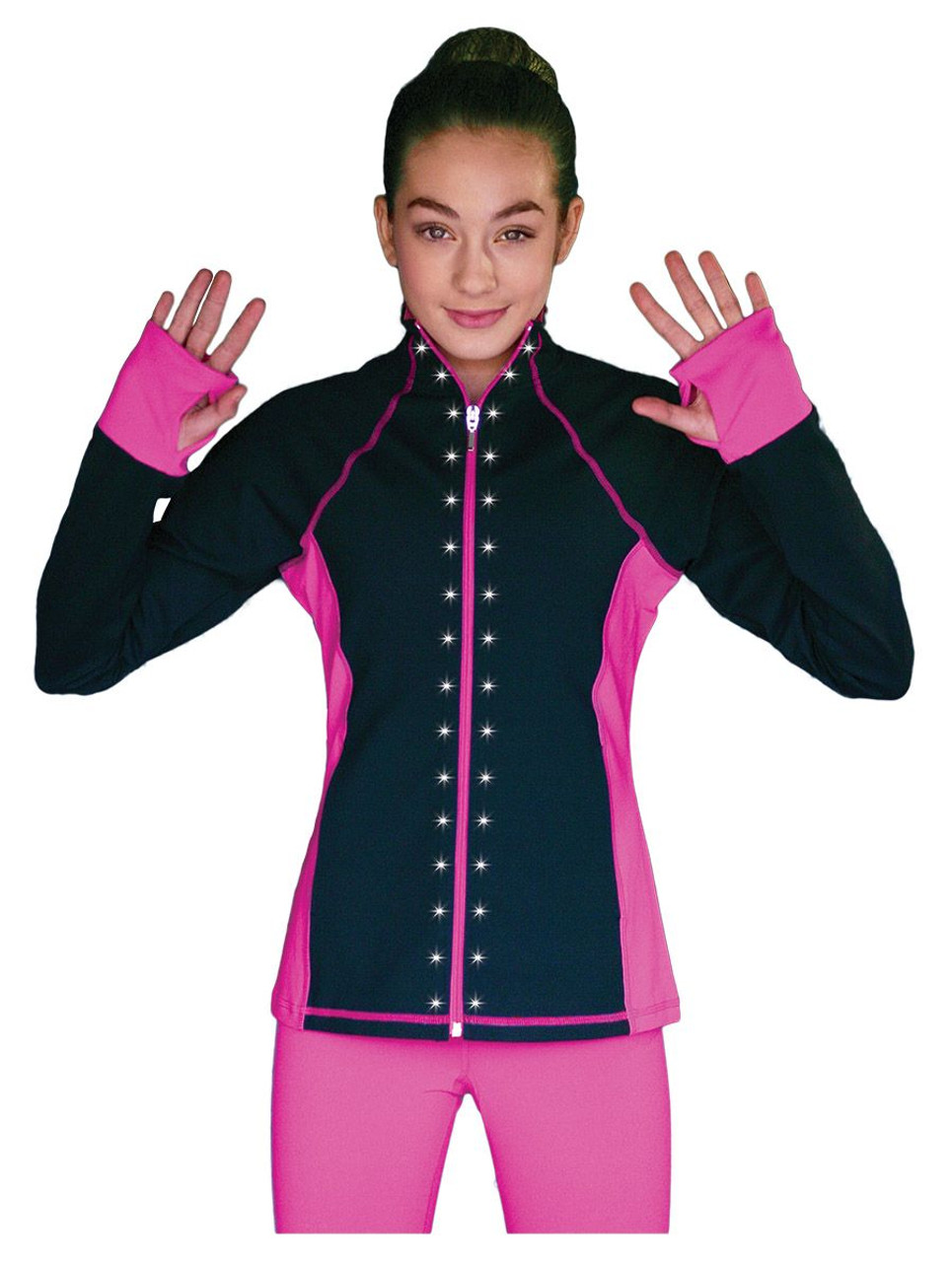 ChloeNoel Elite Swarovski Crystal Design Fuchsia Contrast Jacket w/ Pockets & Thumb Holes