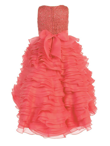 Gwen and Zoe Coral V-Neck Sparkle Ruffle High Low Dress