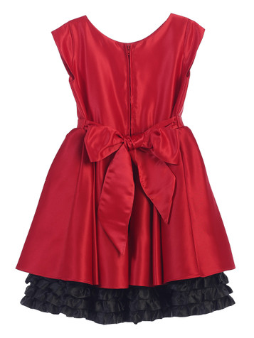 Burgundy Satin Sleeveless V-Neck Dress w/ Ruffles