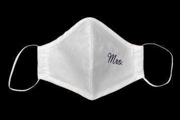 - "Mr" and "Mrs." White embroidered lettering on individual masks