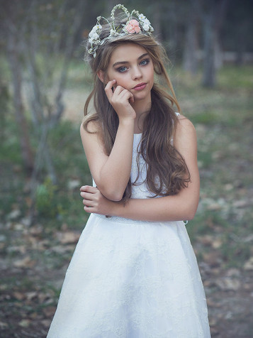 Ivory Mesh Overlay Dress w/ Gem & Pearl Trim