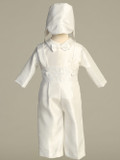 Boys Christening Suspendered Shantung Pant Set w/ Embroidered Cross