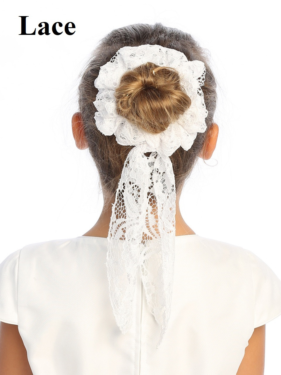 Swea Pea & Lilli LSP92 White Lace Hair Scrunchies w/ Bow