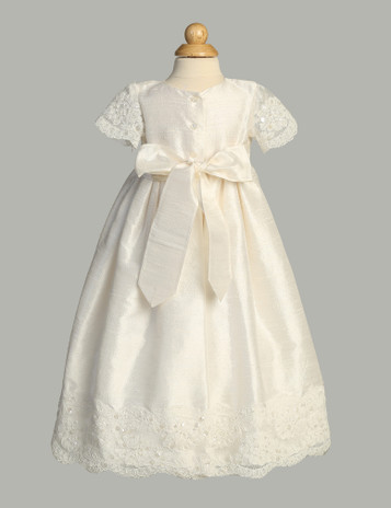 Add to Cart Quick view Swea Pea and Lilli Esther Silk Gown with Beaded Embroidered Tulle Style: LESTHER Short Sleeve Beaded Embroidered Tulle over Shantung Bodice Beaded Embroidered Tulle on Skirt Button and Sash Back Closure Crinoline Layer & Lining Within Matching Bonnet... MSRP: List Price: Price: Price: $136.99 Add to Cart Add to Wish List
