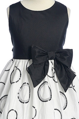 White Flower Girl Dress - Black Polka Dot Embroidered Taffeta