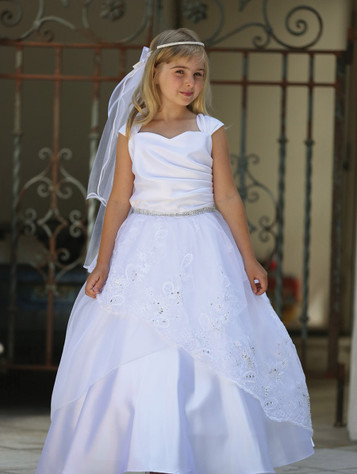 - White satin bodice w/ cap sleeves